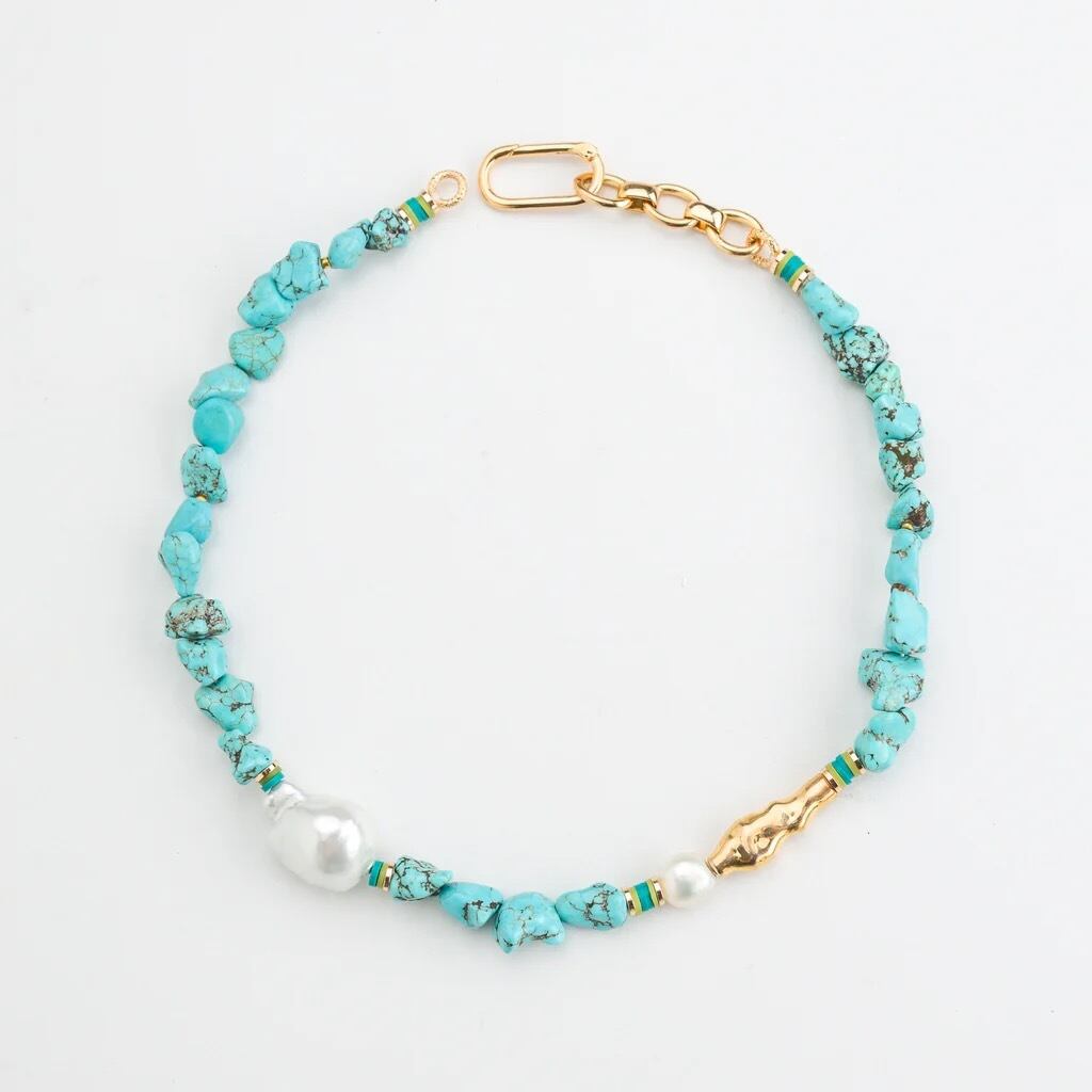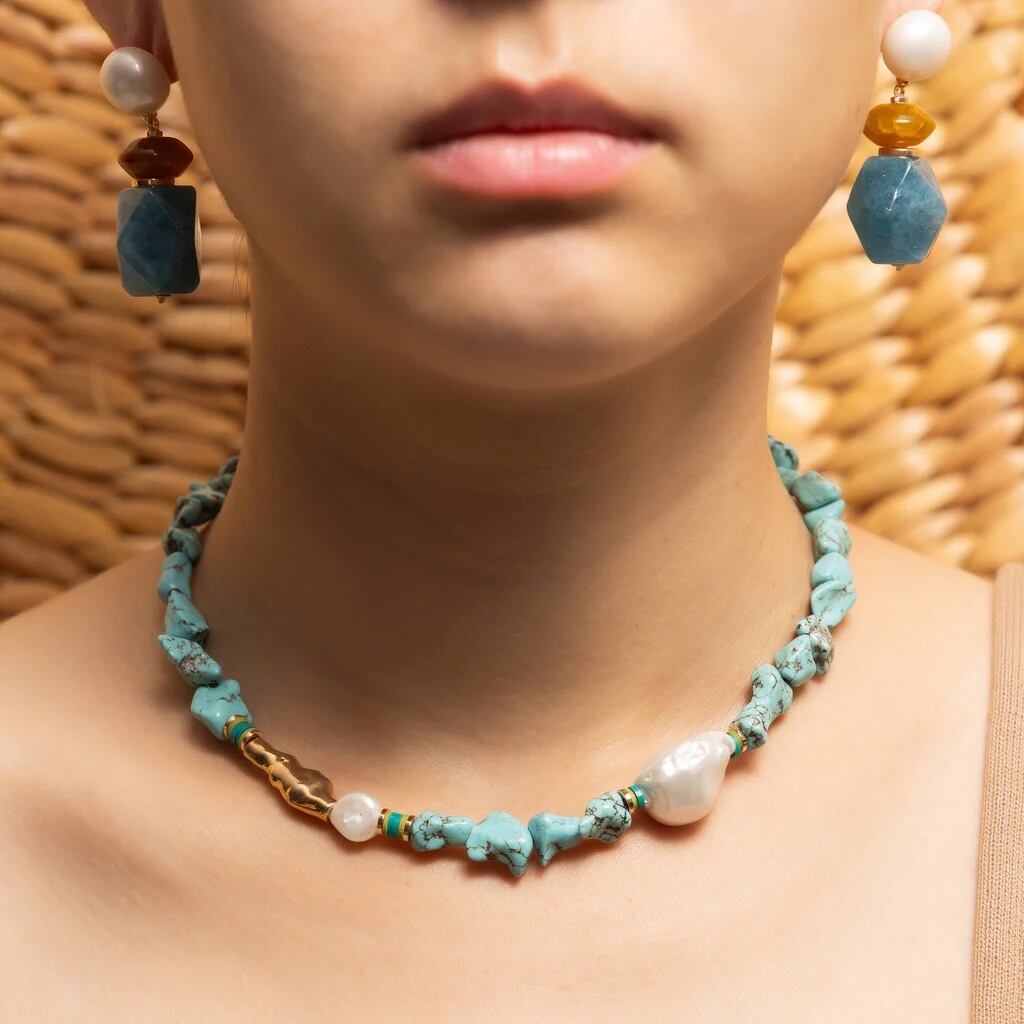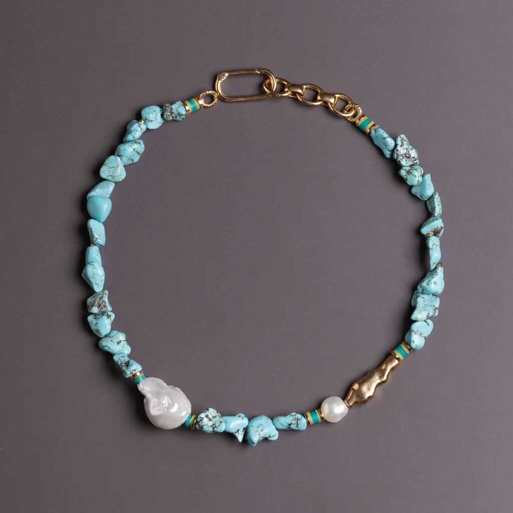 ナカモルのスタイルでデザインを組み合わせた、平和と保護の象徴であるターコイズの魅力を体験してください。